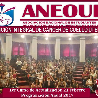 El 21 de Febrero del 2017, se llevó a cabo con un total éxito el 1er curso de la programación académica anual: "Atención Integral de Cáncer de Cuello Uterino" a cargo de excelentes ponentes como el Dr. Manuel Álvarez, la Obsta. Jessica Abanto y el Psic. Fernando Leiva, a quienes agradecemos por todo lo brindado y esperamos volver a verlos en una nueva oportunidad.