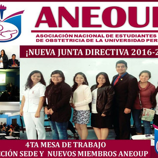LA NUEVA JUNTA DIRECTIVA ANEOUP QUEDA CONFORMADA POR: 1. PRESIDENTA: MARÍA LEONOR CURO CHICLOTE- UNMSM - LIMA 2. VICEPRESIDENTE: BRUNO JEAN PIERO DIOSES YACILA - UNT - TUMBES 3. SECRETARIA: ALEXANDRA PRADO SAICO - USMP - LIMA 4. FISCAL: LEONOR LLUEN TORRES - UDCH - CHICLAYO 5. MARKETING, PRENSA Y DIFUSIÓN: ABIGAIL BORDA MUÑOZ - UNC - CAJAMARCA 6. TESORERA: NATALIA SALDARRIAGA RAMIREZ - UNHEVAL - HUANUCO